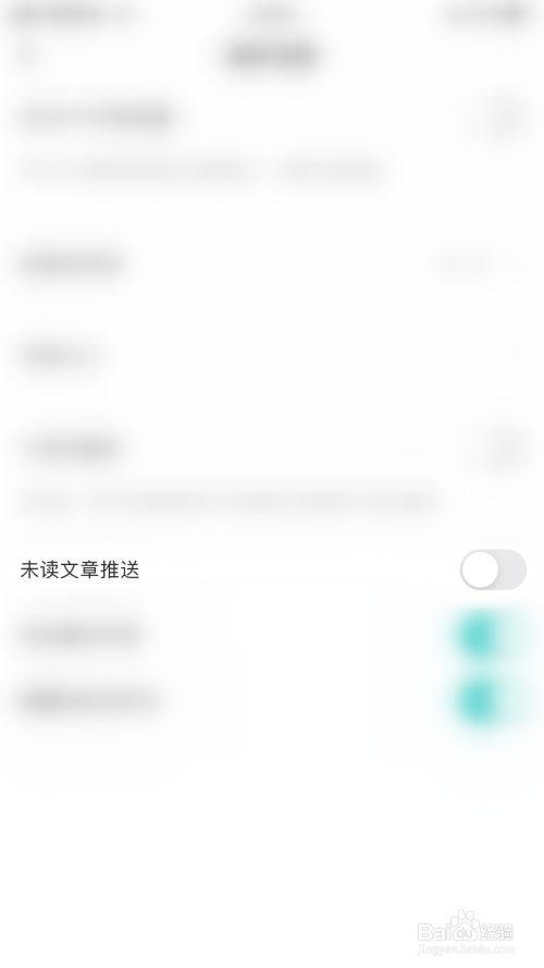 偏好设置界面点击“未读文章推送”后面的圆点