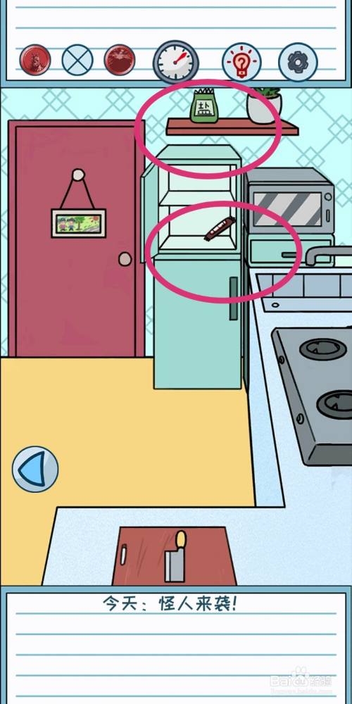 先拖动【食盐】给左侧的大怪物,大怪物就会闭上嘴巴。