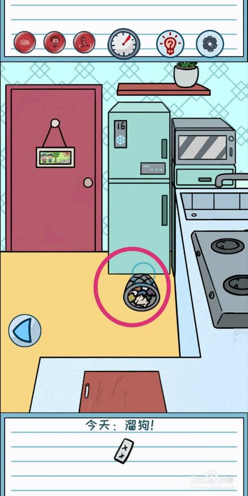 把蓝色狗链给小狗拴上,就可以出门遛狗了,游戏过关。