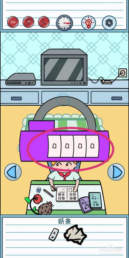 进入右侧场景,点击拿走垃圾桶里的【纸条】。