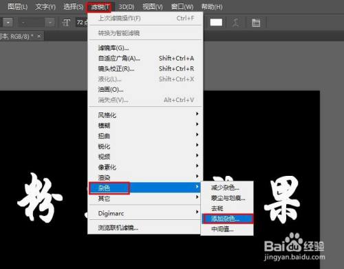 点击滤镜>杂色>添加杂色。
