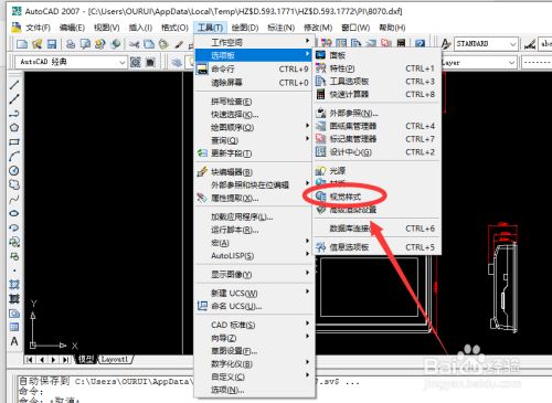 然后在【选项板】下拉菜单中选择【视图样式】并点击 打开。