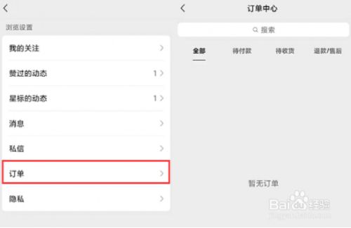 5、在浏览设置下方找到订单,打开后即可看到本身的视频号订单中间。