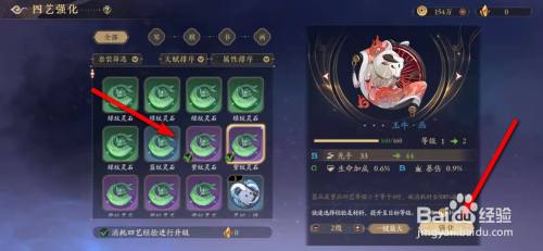 工具/原料荣耀9xHarmonyOS2.0.0.210花亦山心之月1.1.1方式/步骤1在花亦山心之月手游,点击“名流”。2点选名流卡牌,点击“详情”。3点选“四艺”。4点击“改换”。5点选需要强化的四艺装备。6点击“强化”。7勾选强化材料,点击“强化”。8强化当作功,点击屏幕继续即可。END