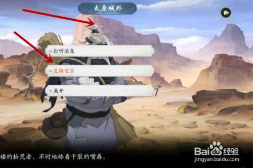 到太原城外点击地上发光点寻找尸身,点击拾荒者对话,互换宝物要在东市找地鼠门门生获得古玩来互换即可。