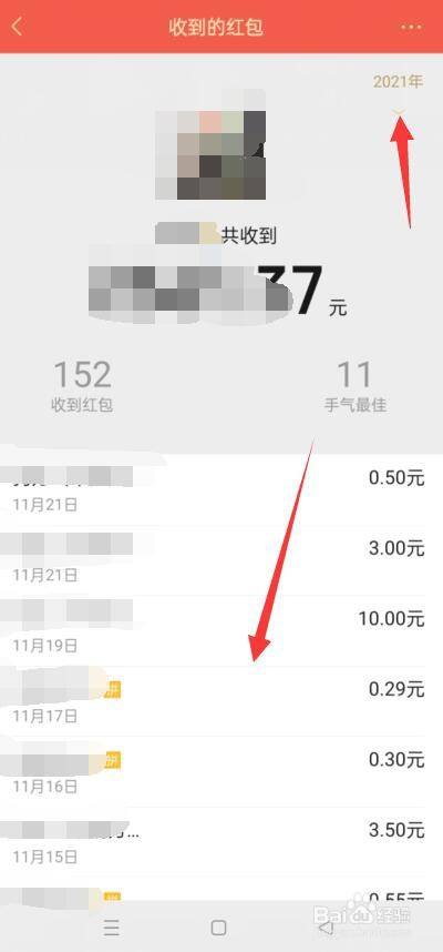 第五步可以查看您所有收到的红包,右上角可以改年份