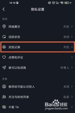 在设置页面下,浏览并找到隐私设置功能,点击选择打开