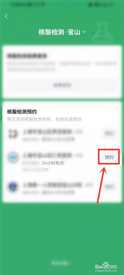 找到显示为24小时检测的病院机构,点击右侧【预约】即可。