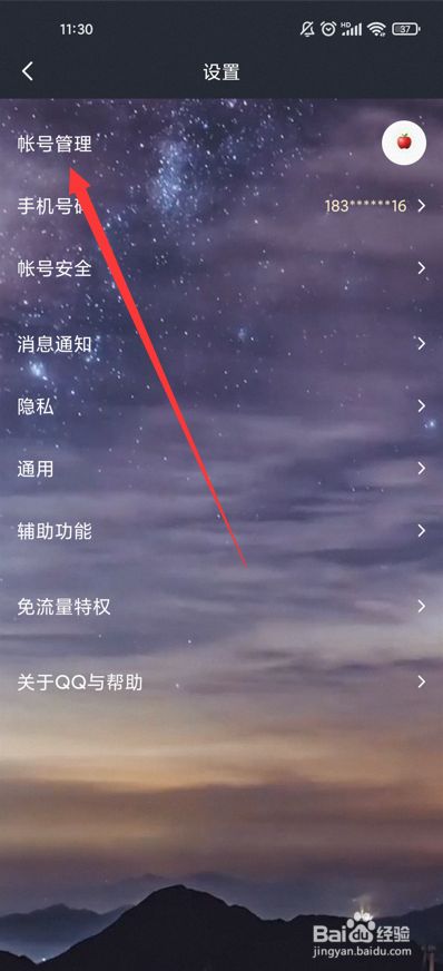 打开设置中的帐号办理