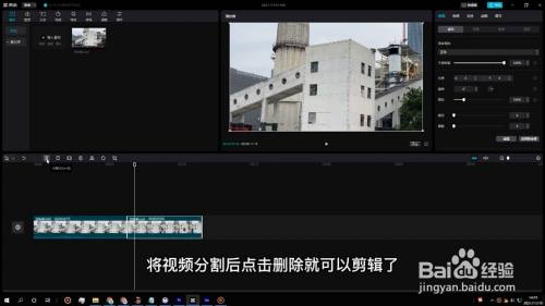 点击东西栏里的朋分,将视频朋分后点击删除就可以剪辑了。