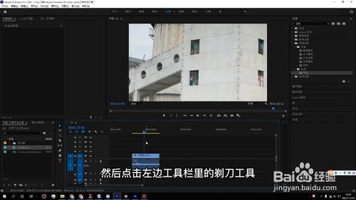 把视频导入在PR里,然后点击左边东西栏里的剃刀东西。