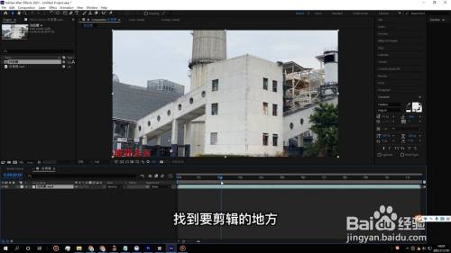 把视频导入AE,然后将该视频新建一个合当作,找到要剪辑的处所。