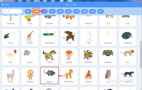 进入选择一个脚色页面中,在动物类别中点击老鼠;