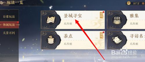 工具/原料黑鲨3JOYUI12花亦山心之月1.1.1方式/步骤1进入到花亦山心之月的游戏中,点击右下方的【弄法】2点击左侧的【休闲弄法】3点击上方的【景域寻宝】4点击右下方的【景域寻宝】5点击下方的【寻宝】6一段动画之后,即可获得寻宝奖励END