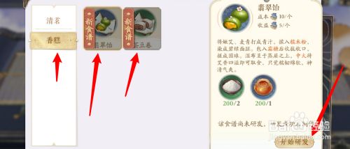 点击左侧的【糕点】,选摘要研发的糕点,并点击右下方的【起头研发】