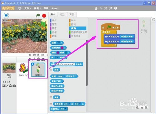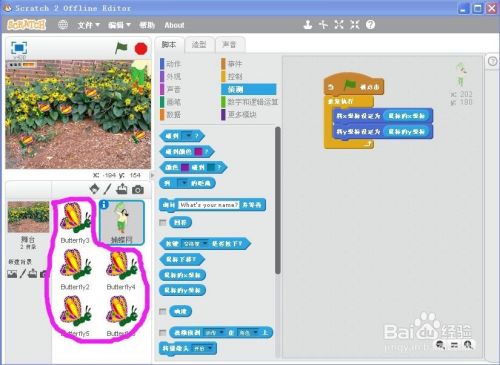 点击蝴蝶,编写剧本如下: