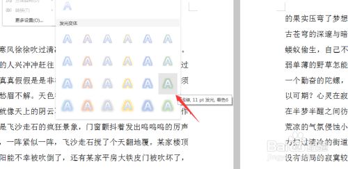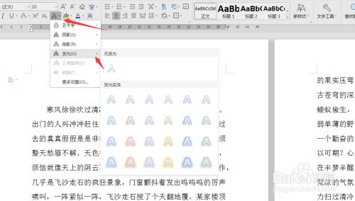 用鼠标点击起头选项下文字结果图标的扩展按钮,然后点击发光。