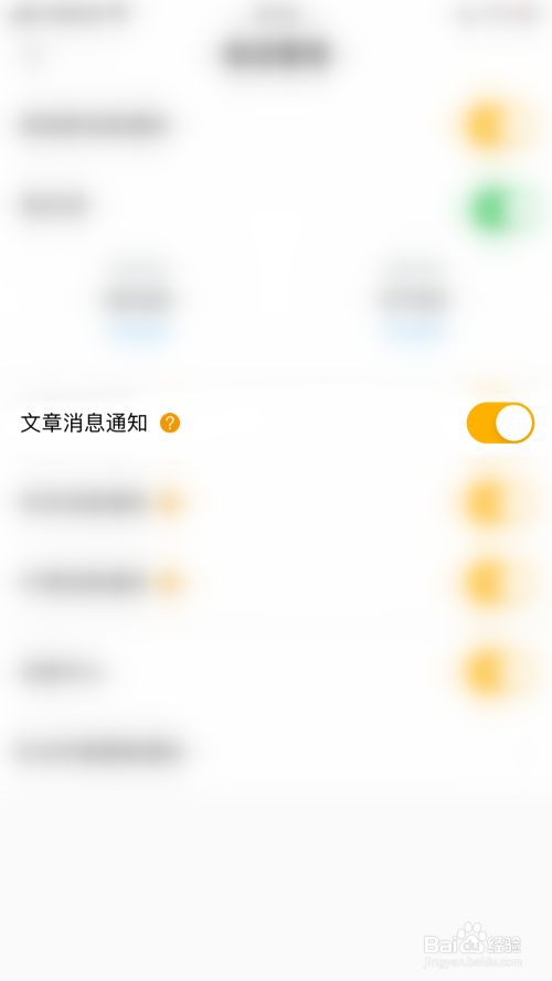 推送办理设置界面点击“文章动静通知”后面的圆点