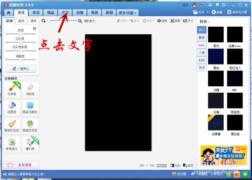 6、这样我们已经完当作了底图,有底图的可以接着跟着做,下面直接放上小编做好的底图,然后我们接着继续跟着红色的箭头点击文字。