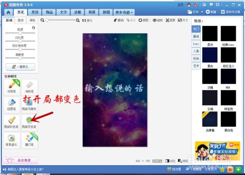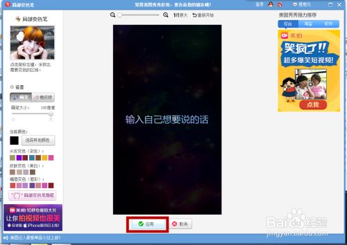 11、在点击了美化之后我们会看到下图1结果,之后我们打开局部变色笔,获得图2结果,选择其他颜色后会呈现图3结果,我们直接选择黑色,将之前的图整个涂满,会获得图4结果,直接点击应用。
