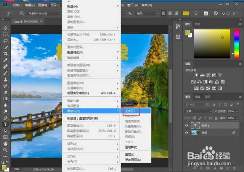 点击图层,选择栅格化,点击文字;