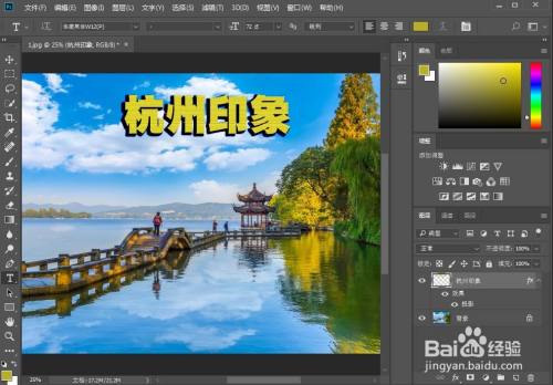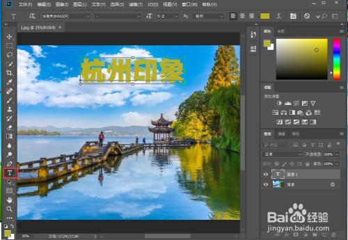 点击横排文字东西,输入杭州印象;