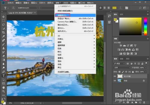 点击滤镜下的滤镜库;