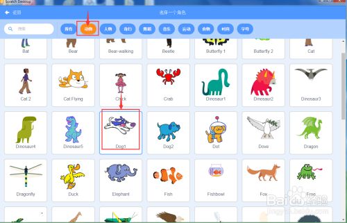 进入选择一个脚色页面中,在动物类别中点击小狗 ;