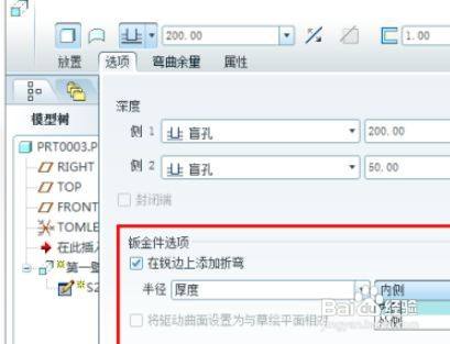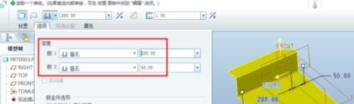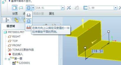 八、第八步在指定深度拉伸时,还可以从选项中设置往两侧拉伸分歧深度,好比这里设置往Front基准平面两侧别离拉伸50和200的深度。