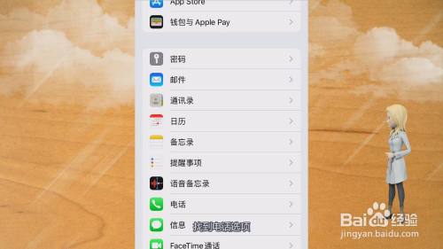 在苹果手机的设置中,找到德律风选项,点击它进入。