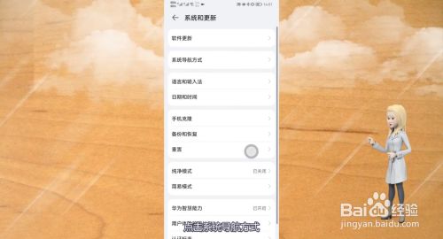 在华为手机的设置中,点击系统和更新,点击系统导航体例。