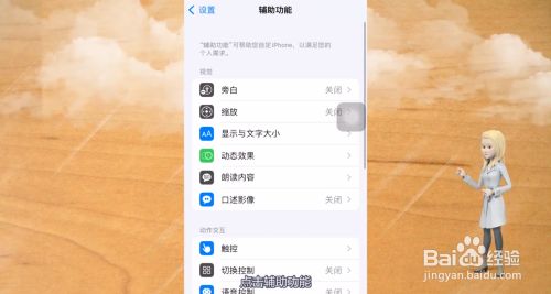 在苹果手机的设置中,点击辅助功能,进入新的界面里。