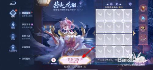 工具/原料iphone13ios15王者荣耀3.71.10600方式/步骤1打开手机上的王者荣耀,然后点击活动。2之后点击共赴花期。3然后点击获取花露。4之后完当作登录等使命,然后点击一键领取。这样便可以获得花露。5之后点击卡牌来进行通关。6在完当作第三关通关使命后,然后便可以点击领取限时脸色礼盒。END