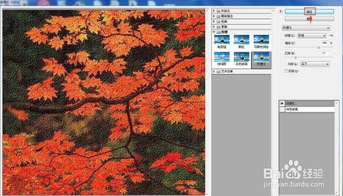 设置好参数,将纹理类型设为砂岩,缩放设为155%,凸现设为11,然后按确定;