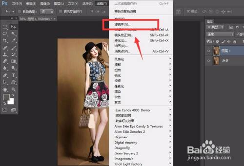 下面,我们点击菜单栏的【滤镜】,找到【滤镜库】。