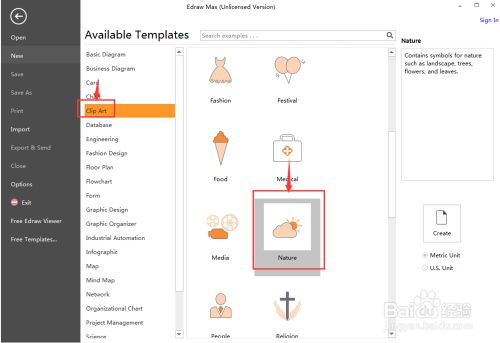 1、打开Edraw Max,在剪切画中双击天然;