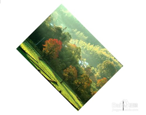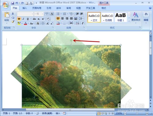 在图片的上边或考上的边,会有一个绿点,按住绿点进行拖动,可以对插入图片进行扭转。