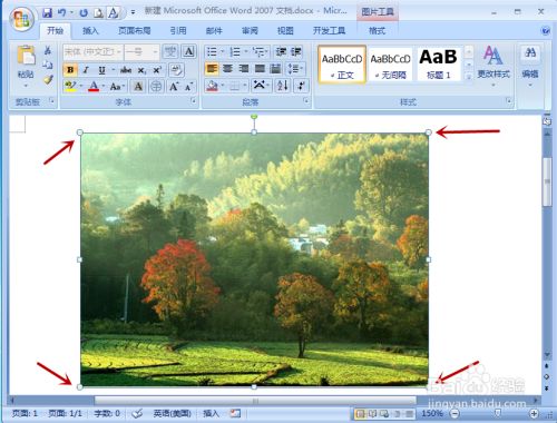 下面可以看到图片就已经插入好了。经由过程图片四周的四个圆圈,标的目的内标的目的外拖动,可以调整图片的大小,等比例调整用这个方式比力好用。