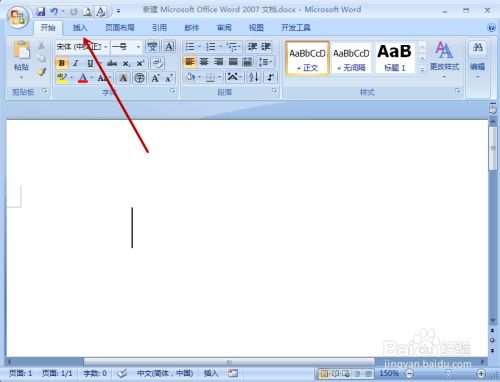打开Word2007,进入到Word2007首页,在最上面点击“插入”选项。