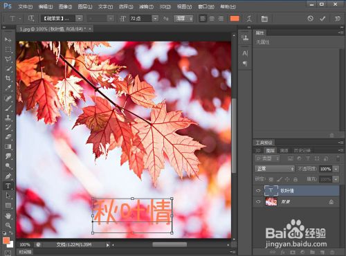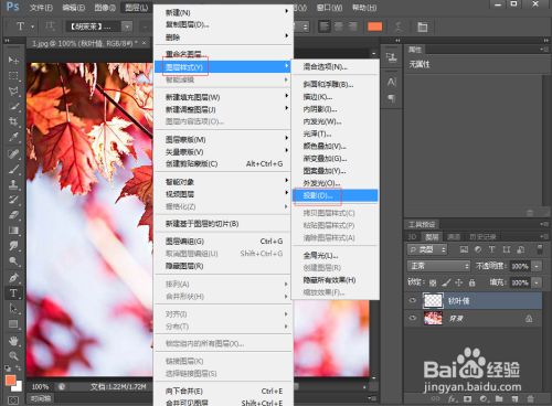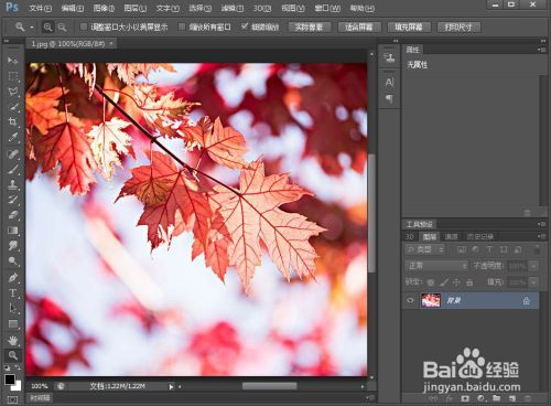 打开ps,添加一张秋叶图片到ps中;