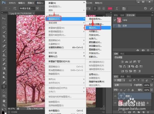 5、点击图层,选择图层样式下的描边;