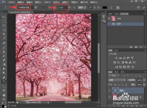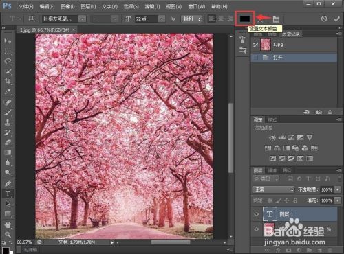 在图片上单击鼠标左键,呈现一个光标后,设置好文字的字体和字号;
