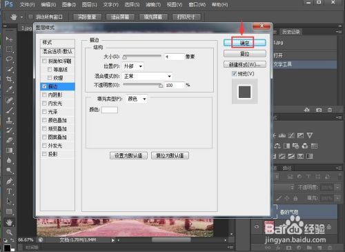 将描边颜色设置为白色,描边大小设为4像素后按确定;