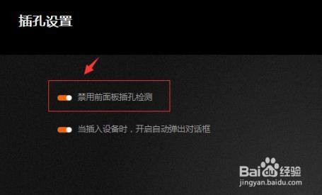 5、将设置中的“禁用前面板插孔检测”前的开关打开即可。