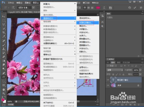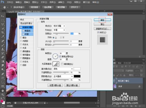 点击图层,选择图层样式下的斜面和浮雕;