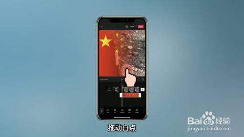 点击下方菜单栏里的蒙版,选择底部左侧的线性。用手指调整一下黄线的角度,拖动白点,截图保留至相册即可。