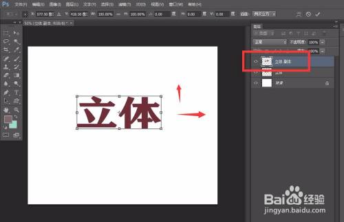 下面,我们按ctrl+j将文字图层复制一层,然后按快捷键ctrl+t将文字标的目的右上角平移。