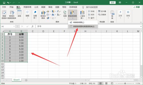 选中数据列,点击插入菜单栏中的【数据透视图和数据透视表】。