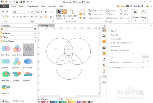 我们就在Edraw Max中建立好了一个三圆维恩图。