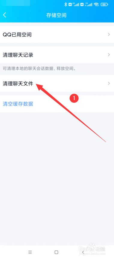 在存储空间界面中点击清理聊天文件选项